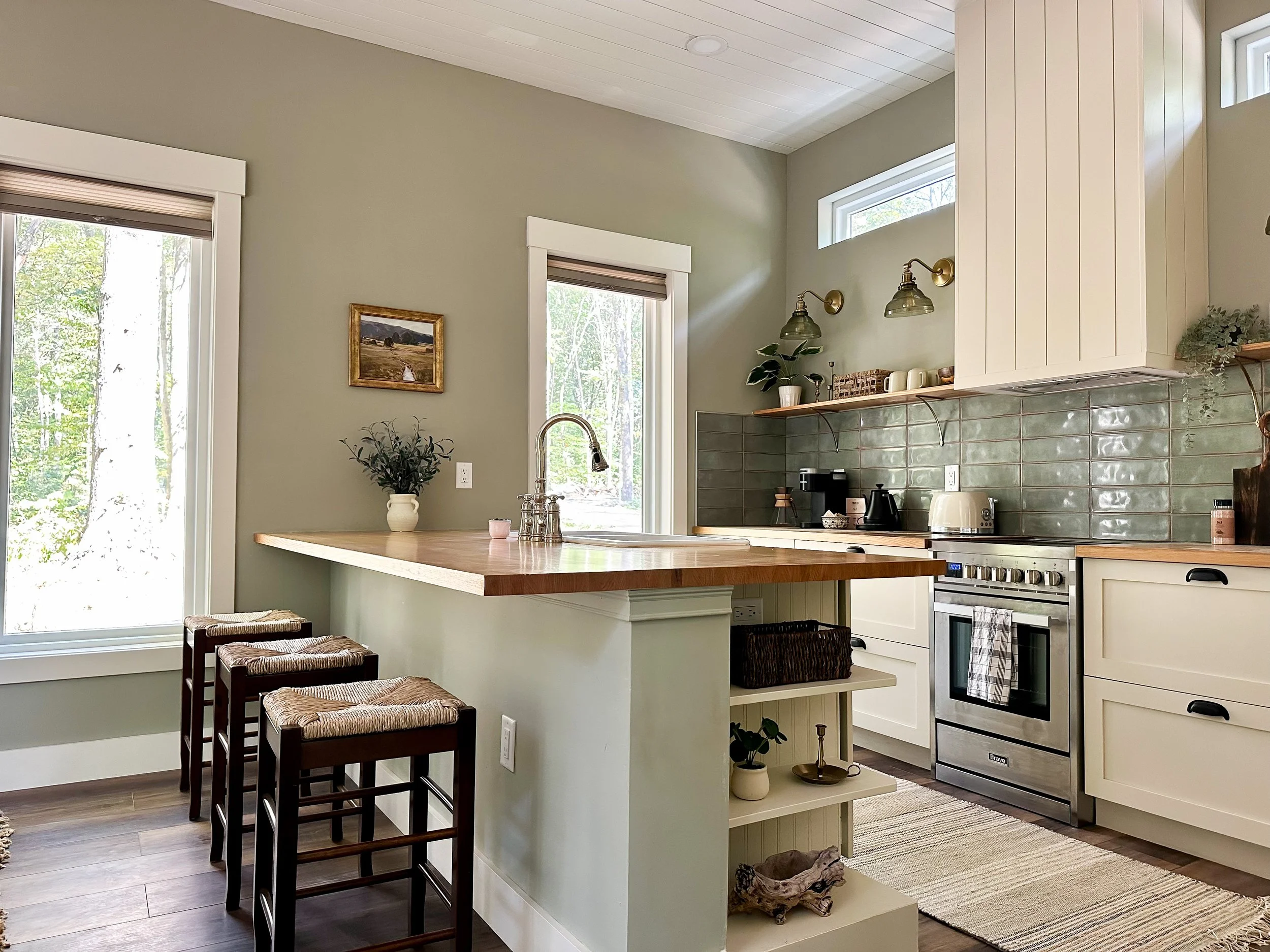 Tiny home cottage This was a tiny home project in hocking hills that called for creative use of space and a cozy aesthetic. we sought to invoke english charm in every corner through pattern, texture, and earthy tones.